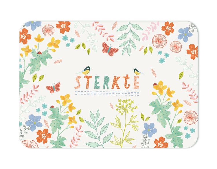 De kaart is gedrukt op 270 grams Environment Birch papier: off-white papier met een klein vezeltje er in. Environment Birch is FSC gecertificeerd en wordt geproduceerd zonder gebruik te maken van optische witmakers als chloor en bestaat uit minimaal 30% post-consumer gerecycleerde vezels.