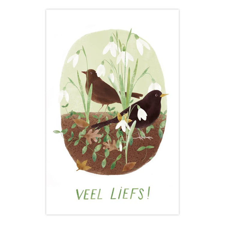 Mini Kaart - Sneeuwklokjes en Merels 'Veel Liefs!'